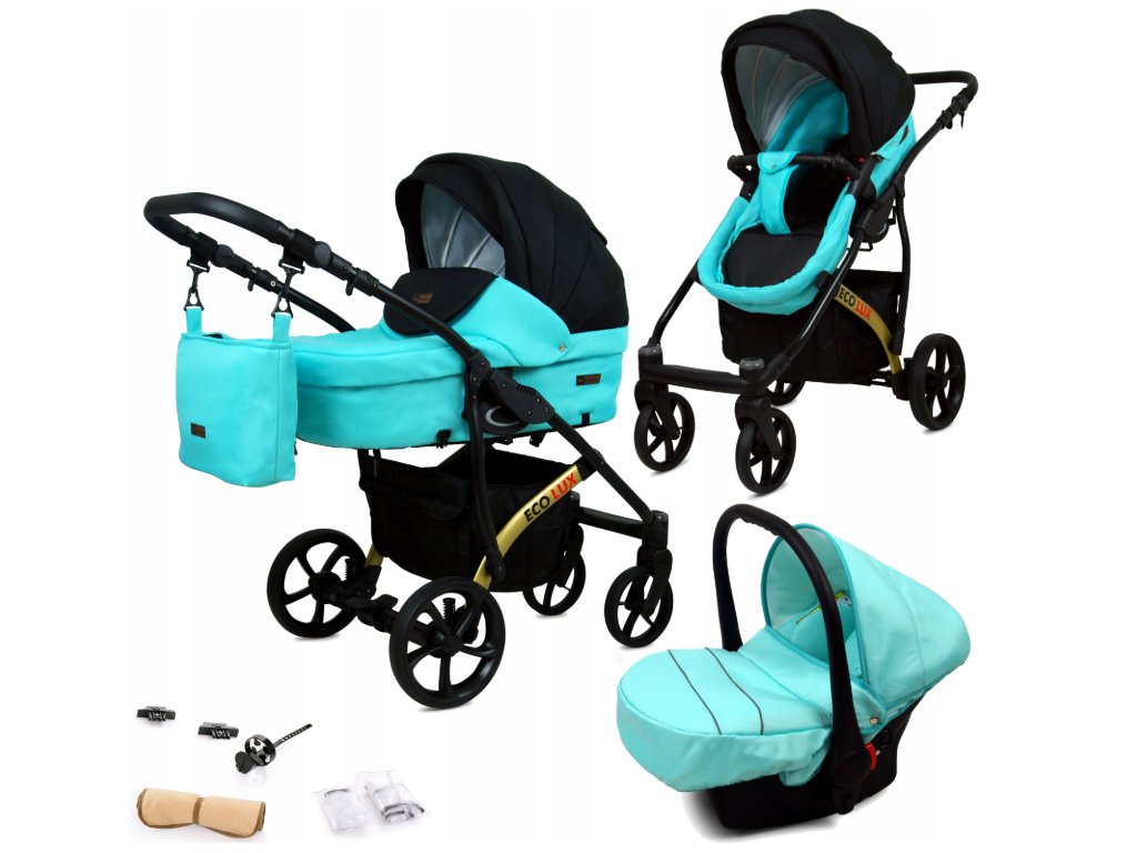 EcoLux 3v1 je multifunkční kočárek z nejnovější kolekce známé evropské značky BabyLux. Může být používán jako hluboký kočárek, procházkový kočárek a autosedačka s možností montáže na rám kočárku. Vyrobeno z nejkvalitnějších tkanin typu Exclusive s certifikátem OEKO-TEX STANDARD 100 v barvě Mint, která nejen vypadá mimořádně elegantně, ale je také velmi odolná vůči vyblednutí a vlhkosti.