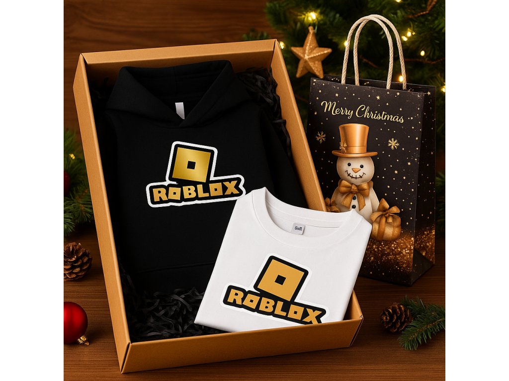 Dárkový set obsahuje teplákovou soupravu, tričko, dárkovou krabičku + vánoční dárkovou tašku