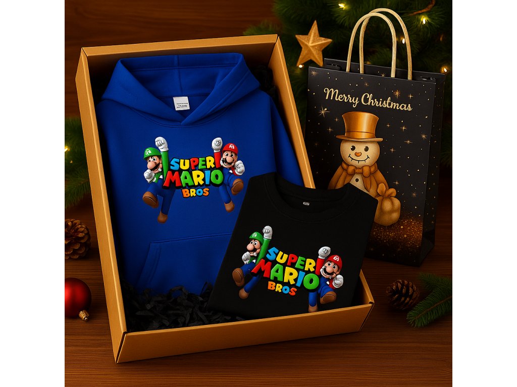 Dárkový set obsahuje mikinu, tričko, dárkovou krabičku + vánoční dárkovou tašku